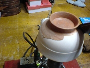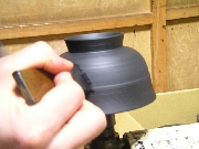 惣身が充分乾固したら、磨きます。思ったより凹まなかったところは刃物で削っておきます。