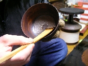 この工程は、生漆(きうるし)、または糊漆(のりうるし)をそのまま塗ります。溶剤等は使いません。