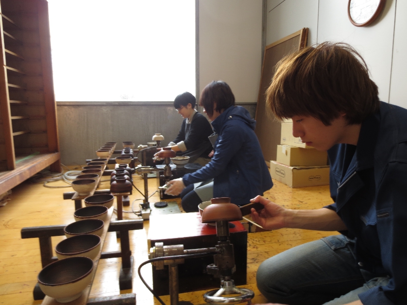 下地付け 椀に合わせて削った箆で漆の下地を付けます